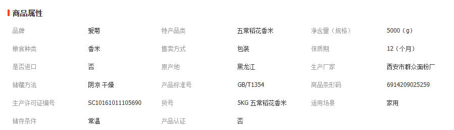 爱菊五常大米 5kg 稻花香2号 1kg*5袋 东北大米批发 1袋