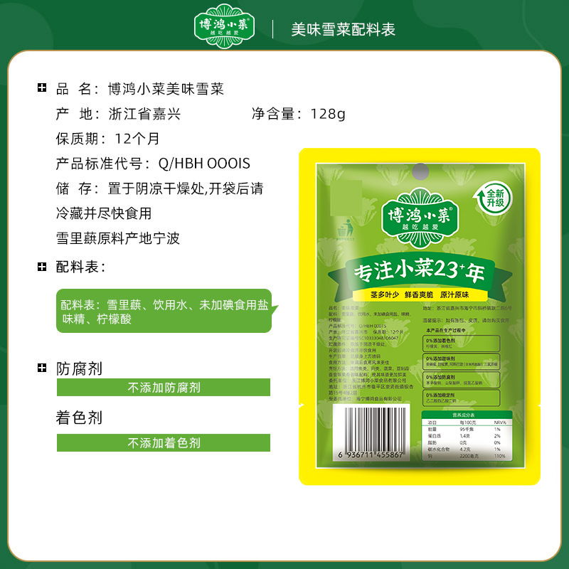 博鸿小菜雪菜咸菜128g宁波雪里蕻下饭菜烧菜炒毛豆酱菜腌菜批发 1袋