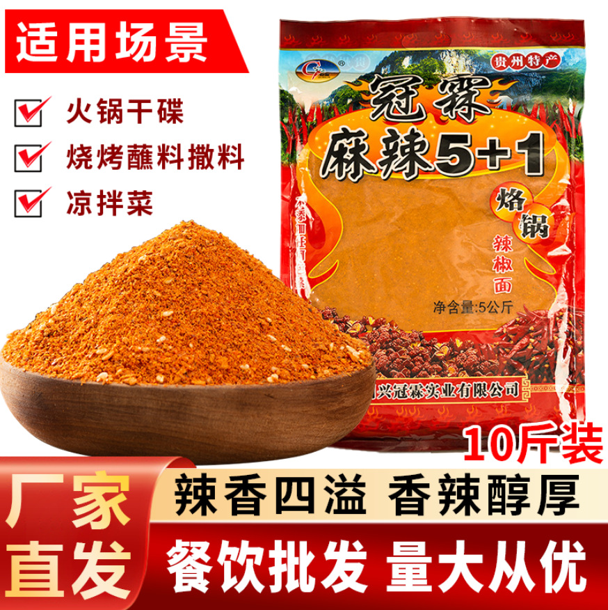 贵州冠霖特麻特辣五香麻辣辣椒面10斤装蘸料适用烧烤烙锅串串火锅