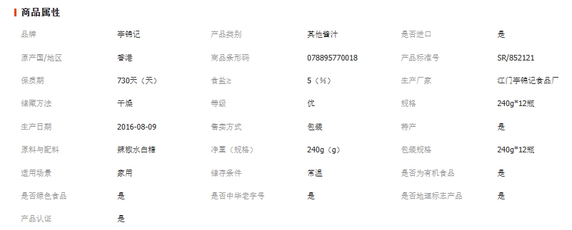 李锦记桂林辣椒酱240g*12 烧烤伴侣 调料拌面酱 超市装