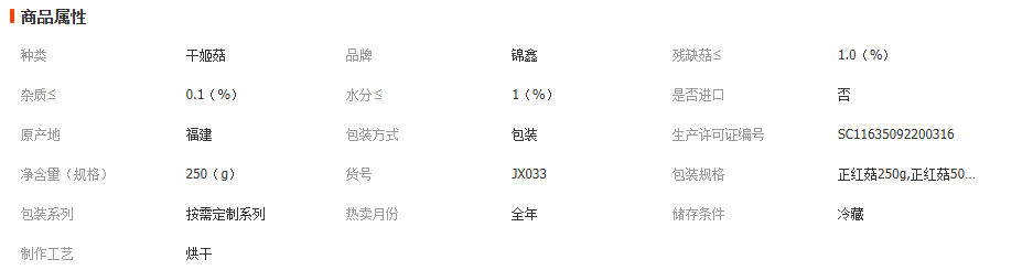 竹荪(1) 黑木耳(2) 山药及其制品(1) 猴头菇(1) 香菇(1) 其他方便食品(2) 银耳(4) 姬松茸(1) 羊肚菌(3) 其他干货(1)