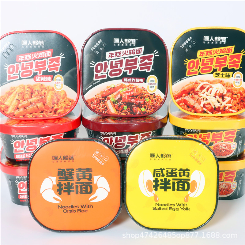 嘿人部落蟹黄咸蛋黄拌面免煮泡面年糕火鸡面盒装方便速食整件批发