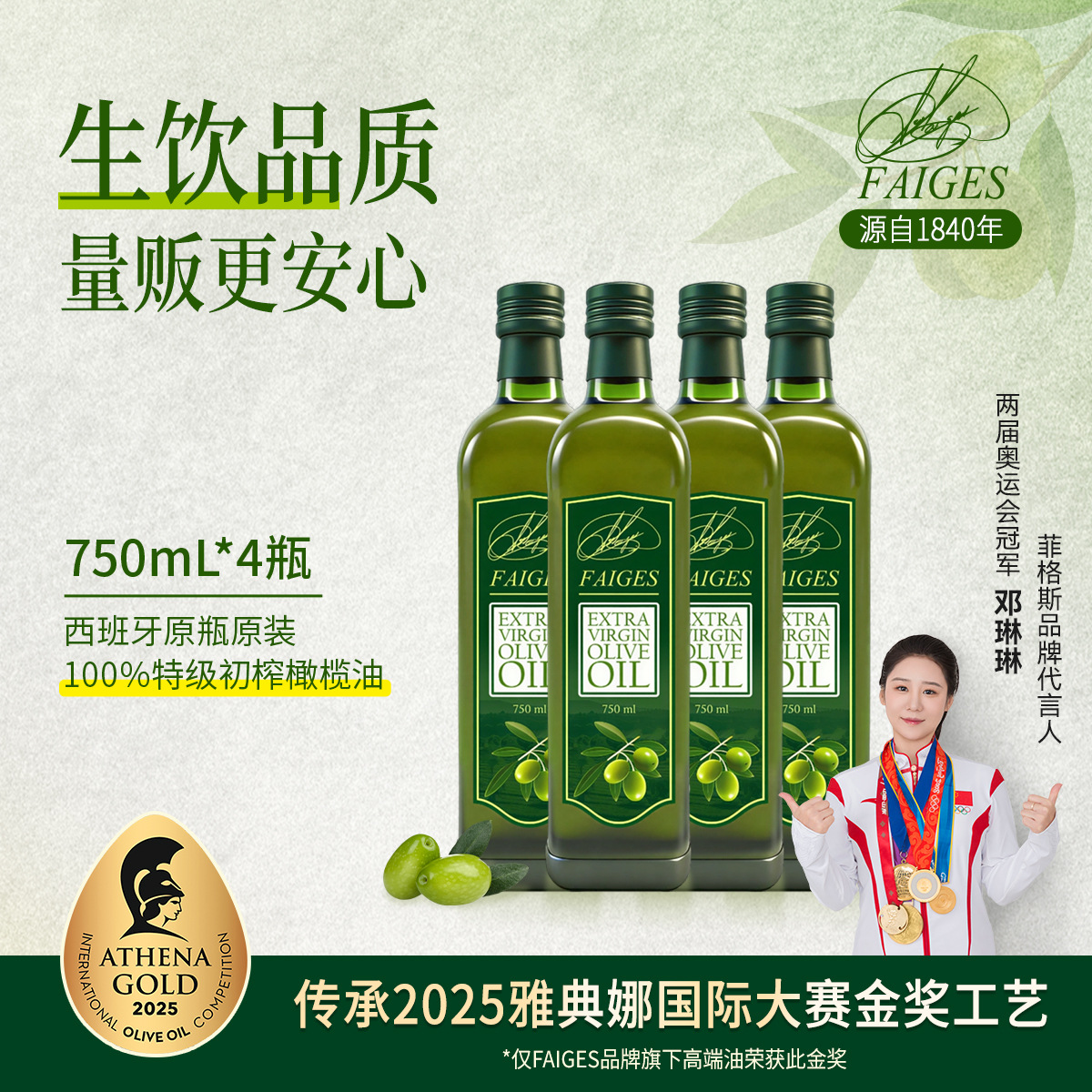 菲格斯西班牙原装进口特级初榨橄榄油食用批发瓶装 750mlx4特惠装