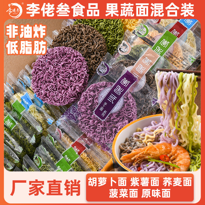 李佬叁五彩果蔬面混合面菠菜紫薯胡萝卜面火锅面荞麦面批发代发