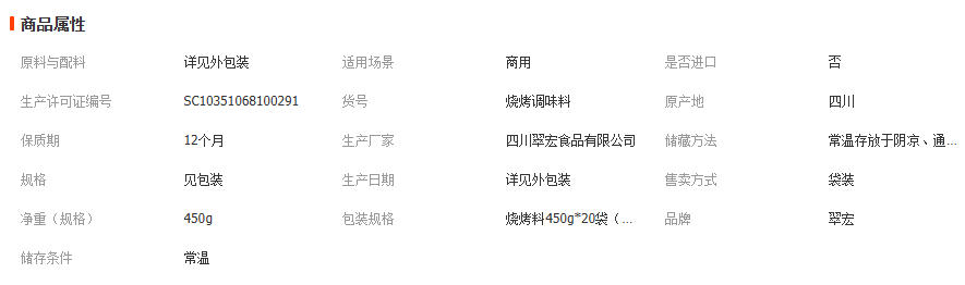 翠宏烧烤料450g撒料烤肉涮羊牛肉烤翅腌撒料户外干碟蘸料整箱批发