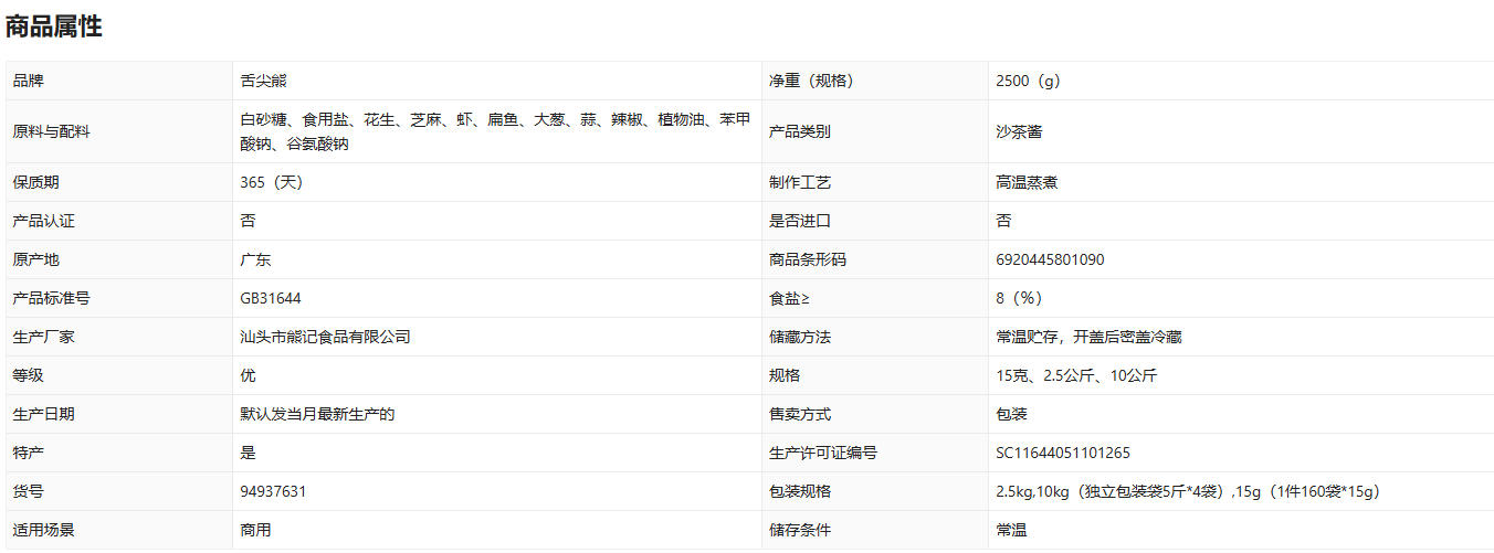 潮汕正宗熊记沙茶酱沙茶王沙爹餐饮商用大桶牛肉火锅店蘸料调味品 1桶
