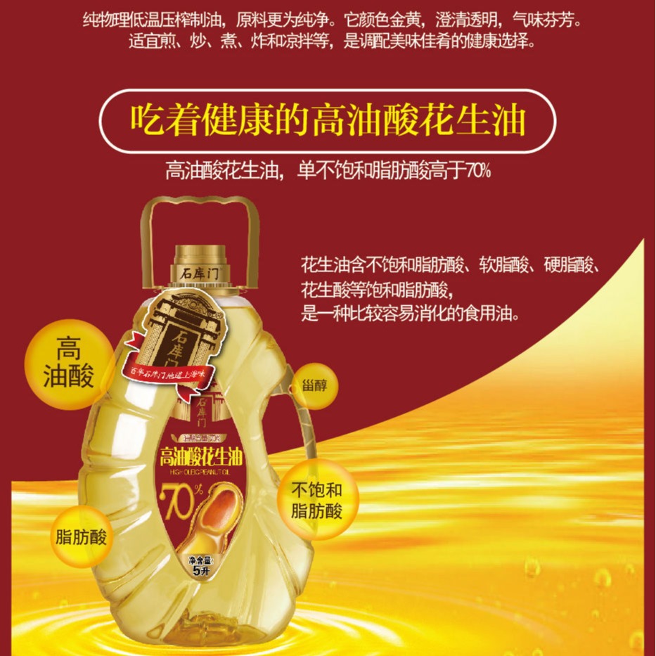 石库门 高油酸花生油5L 纯植物油食用油 高端送礼 批发代理 1桶