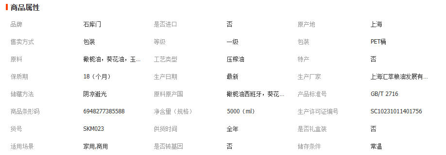 石库门 食用植物调和油添加橄榄油5升 食用油厂家直发批发 1桶