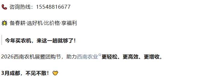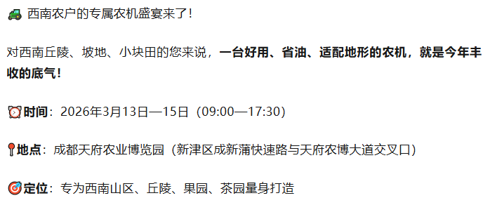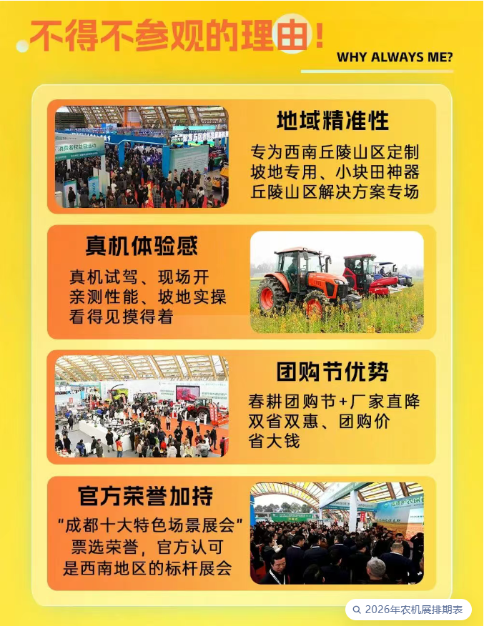 "真机试驾,团购抄底!2026西南农机展为丘陵春耕备足‘劲’"