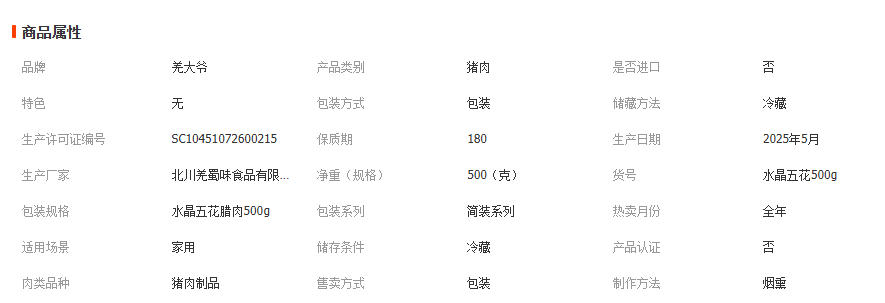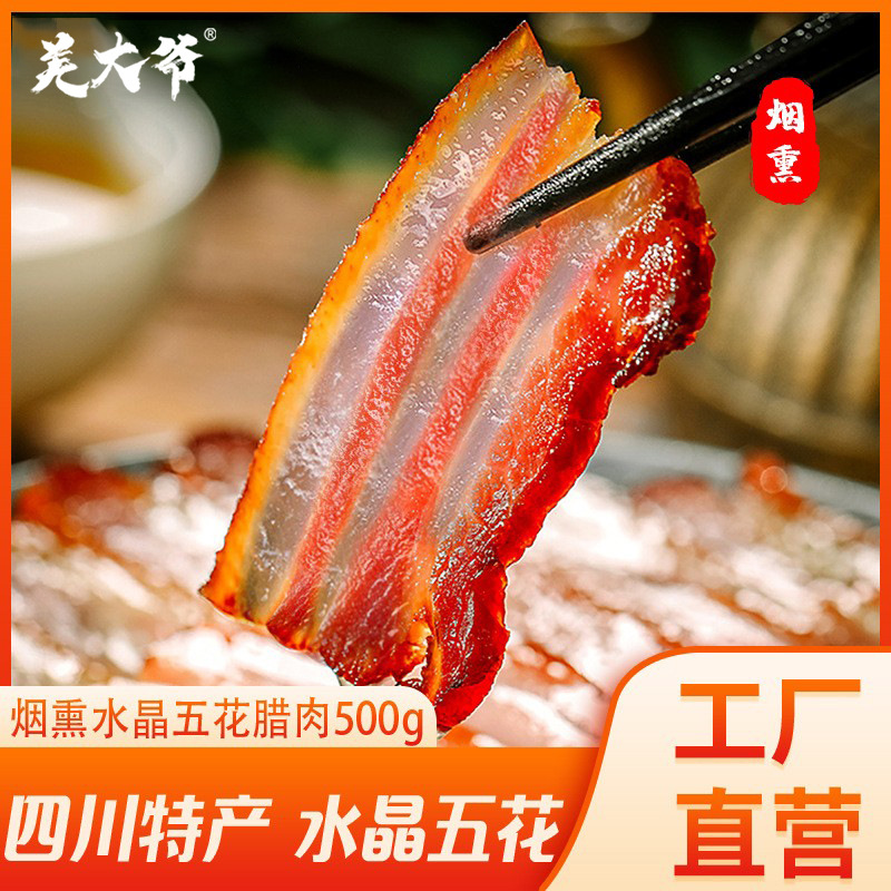 羌大爷 四川特产烟熏水晶五花腊肉500g 咸肉批发代发+1件代发