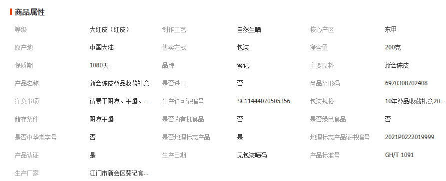 新会陈皮10年葵记联名礼盒送礼老陈皮正宗特产200克罐装批发茶叶