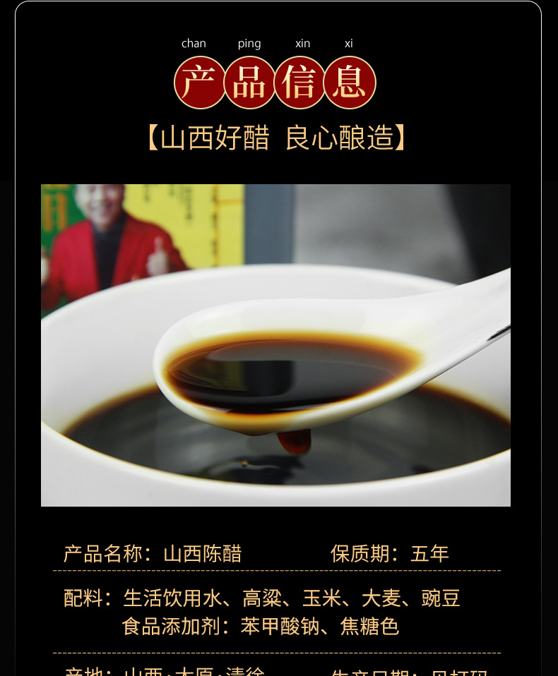 本网页所展示的有关【醋厂粮食酿造三年特产老陈醋2.5L圆桶装饭店调味香醋山西陈醋批发_醋_清徐县江宇醋业有限公司】的信息/图片/参数等由农牧云的会员【清徐县江宇醋业有限公司】提供,由农牧云会员【清徐县江宇醋业有限公司】自行对信息/图片/参数等的真实性、准确性和合法性负责,本平台(本网站)仅提供展示服务,请谨慎交易,因交易而产生的法律关系及法律纠纷由您自行协商解决,本平台(本网站)对此不承担任何责任。您在本网页可以浏览【醋厂粮食酿造三年特产老陈醋2.5L圆桶装饭店调味香醋山西陈醋批发_醋_清徐县江宇醋业有限公司】有关的信息/图片/价格等及提供【醋厂粮食酿造三年特产老陈醋2.5L圆桶装饭店调味香醋山西陈醋批发_醋_清徐县江宇醋业有限公司】的商家公司简介、联系方式等信息。